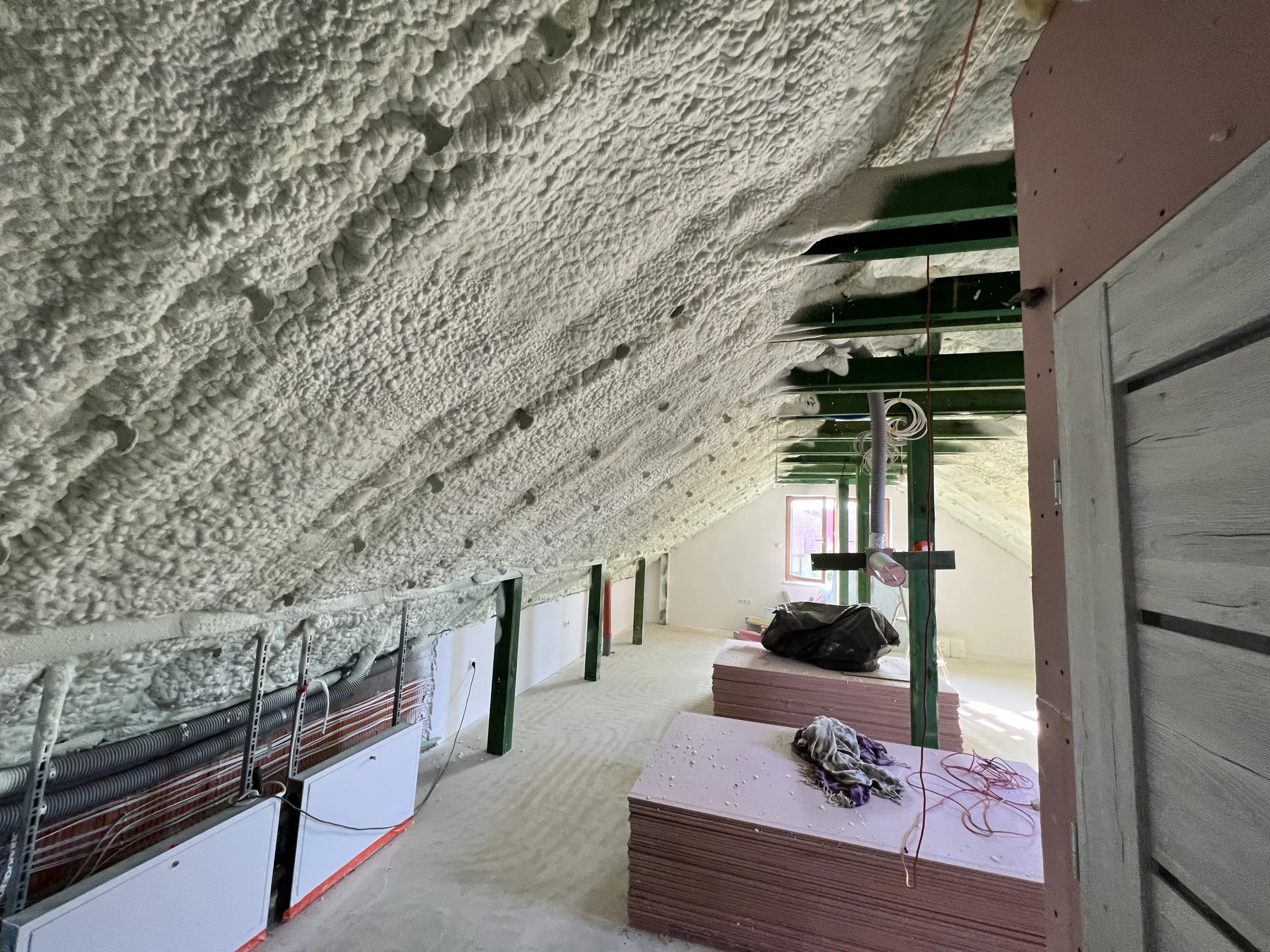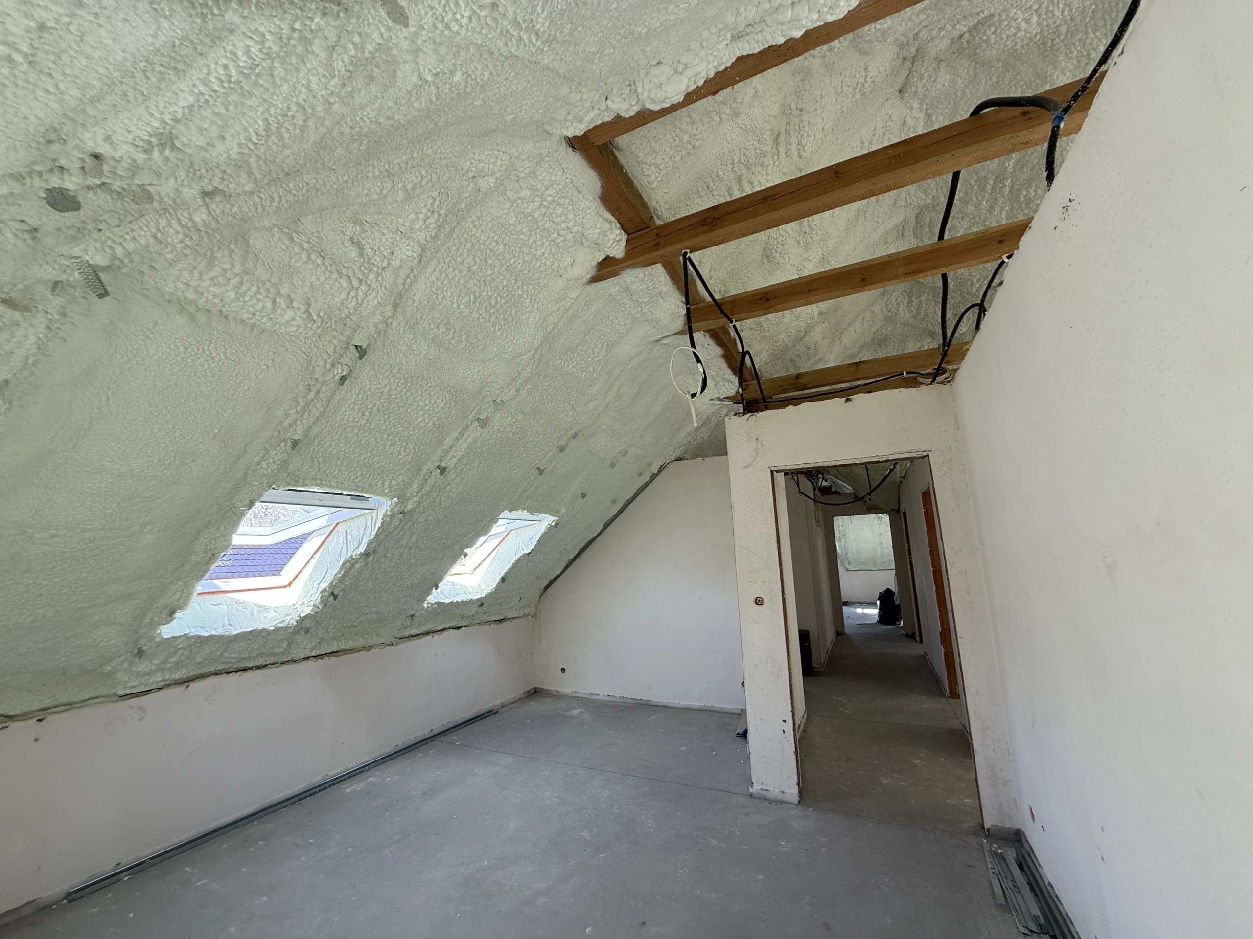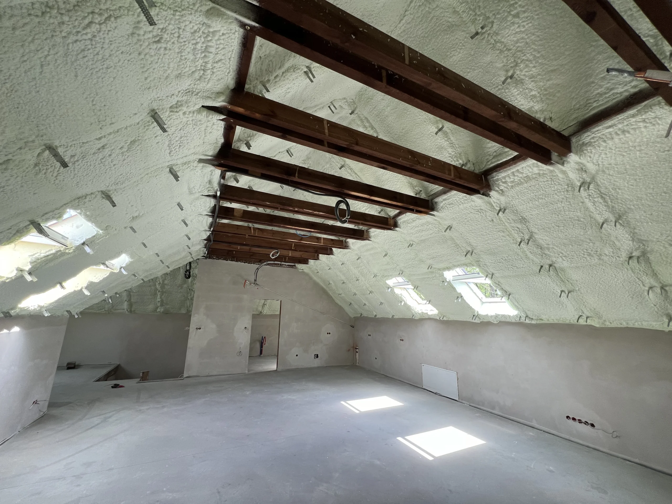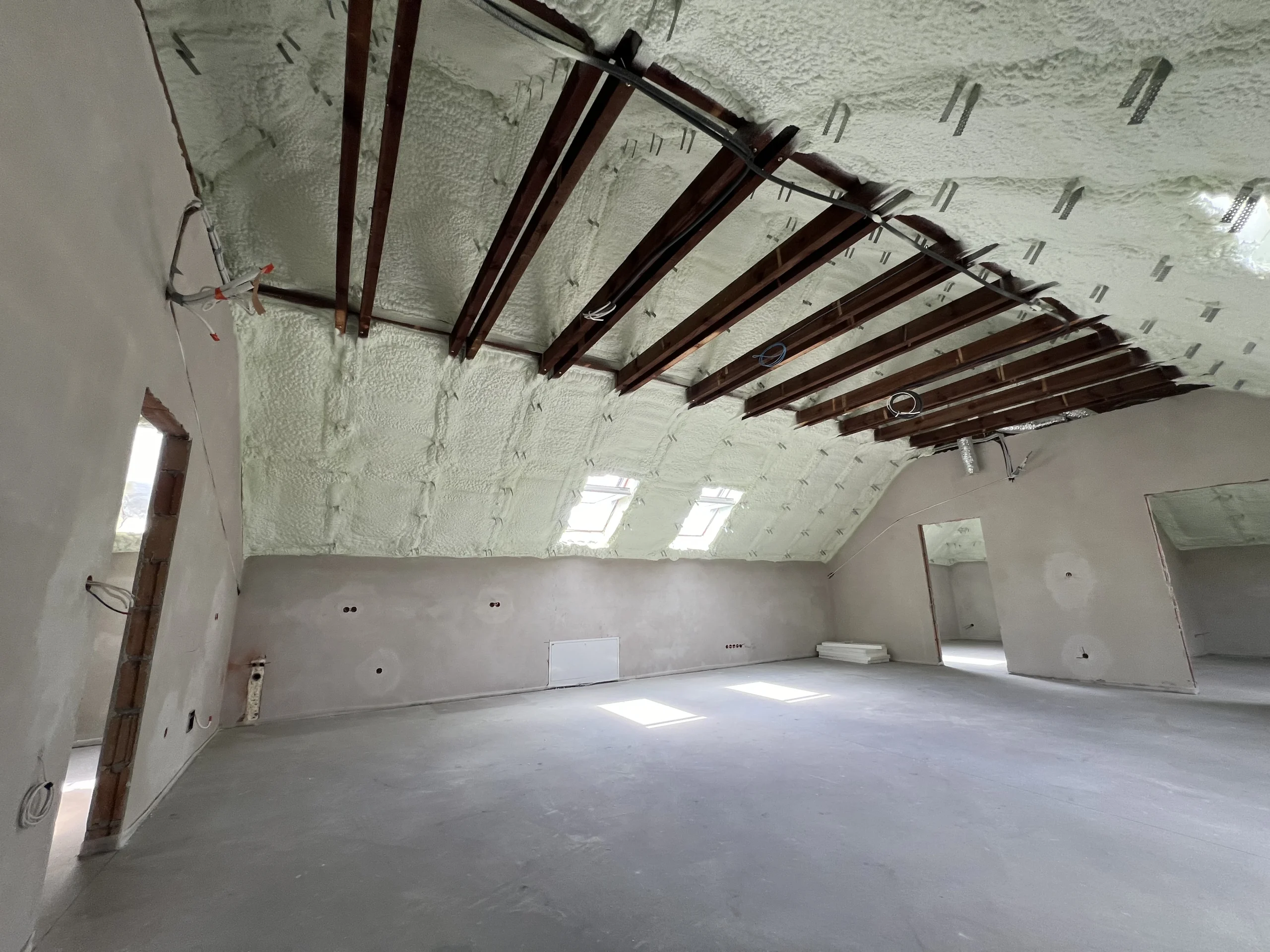 Poniżej prezentujemy wybrane realizacje ocieplenia poddaszy pianą PUR wykonane przez nasz zespół. Technologia natrysku gwarantuje szczelną izolację, eliminację mostków termicznych oraz szybki montaż nawet w trudno dostępnych miejscach konstrukcji dachu.