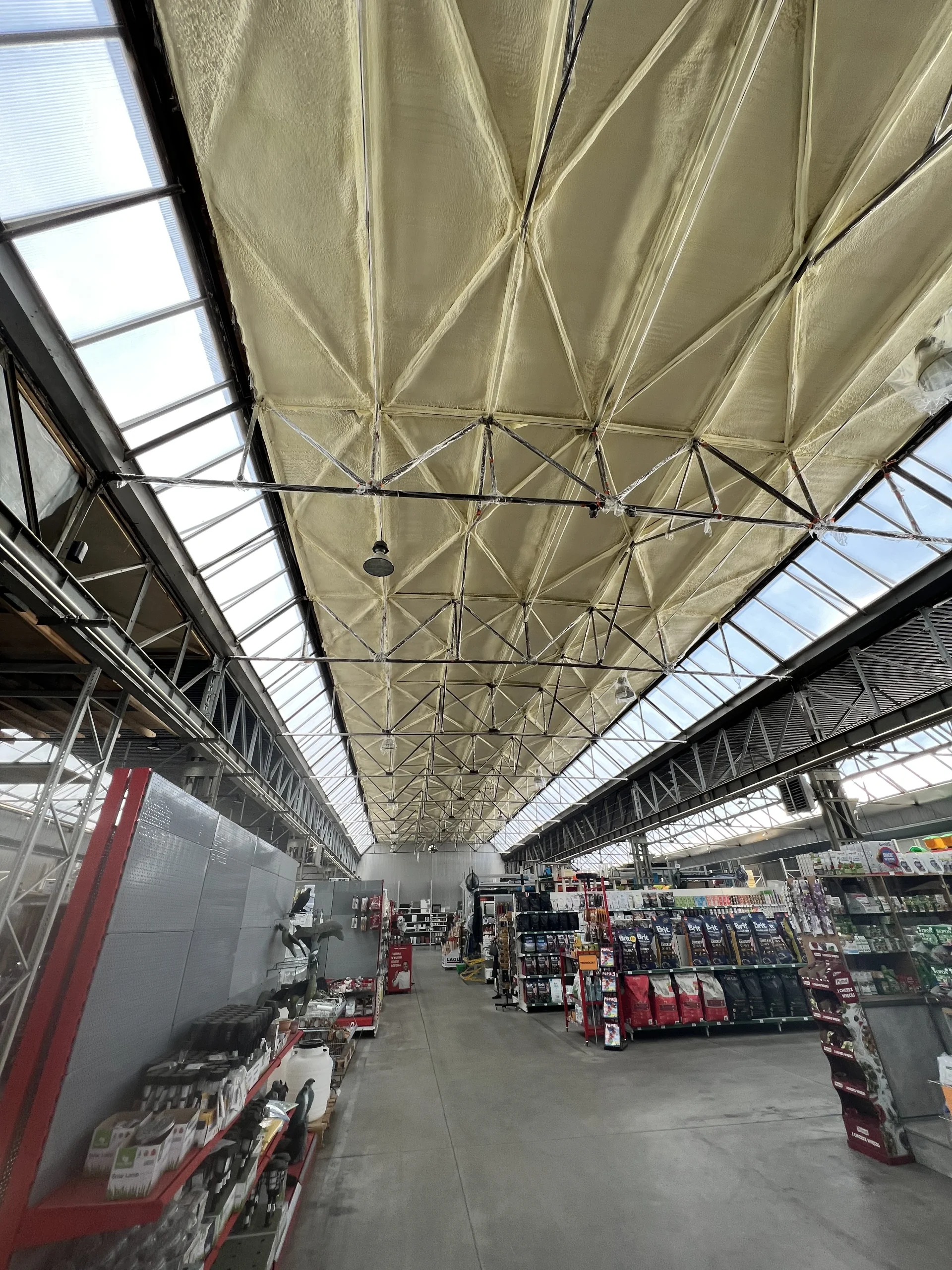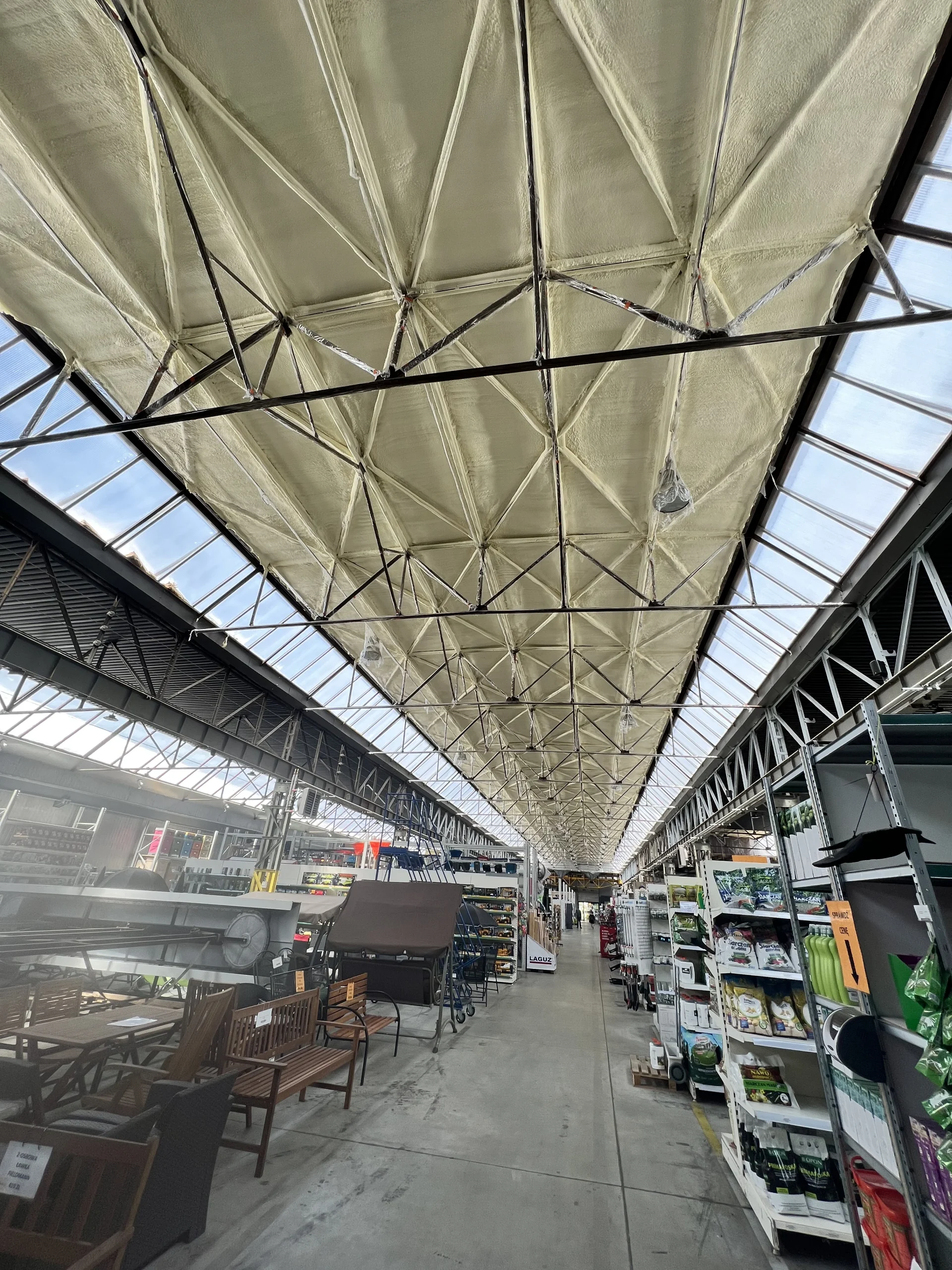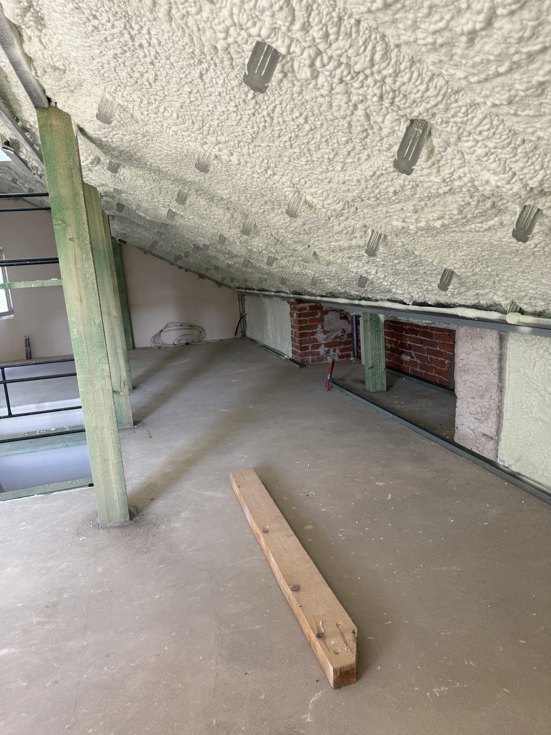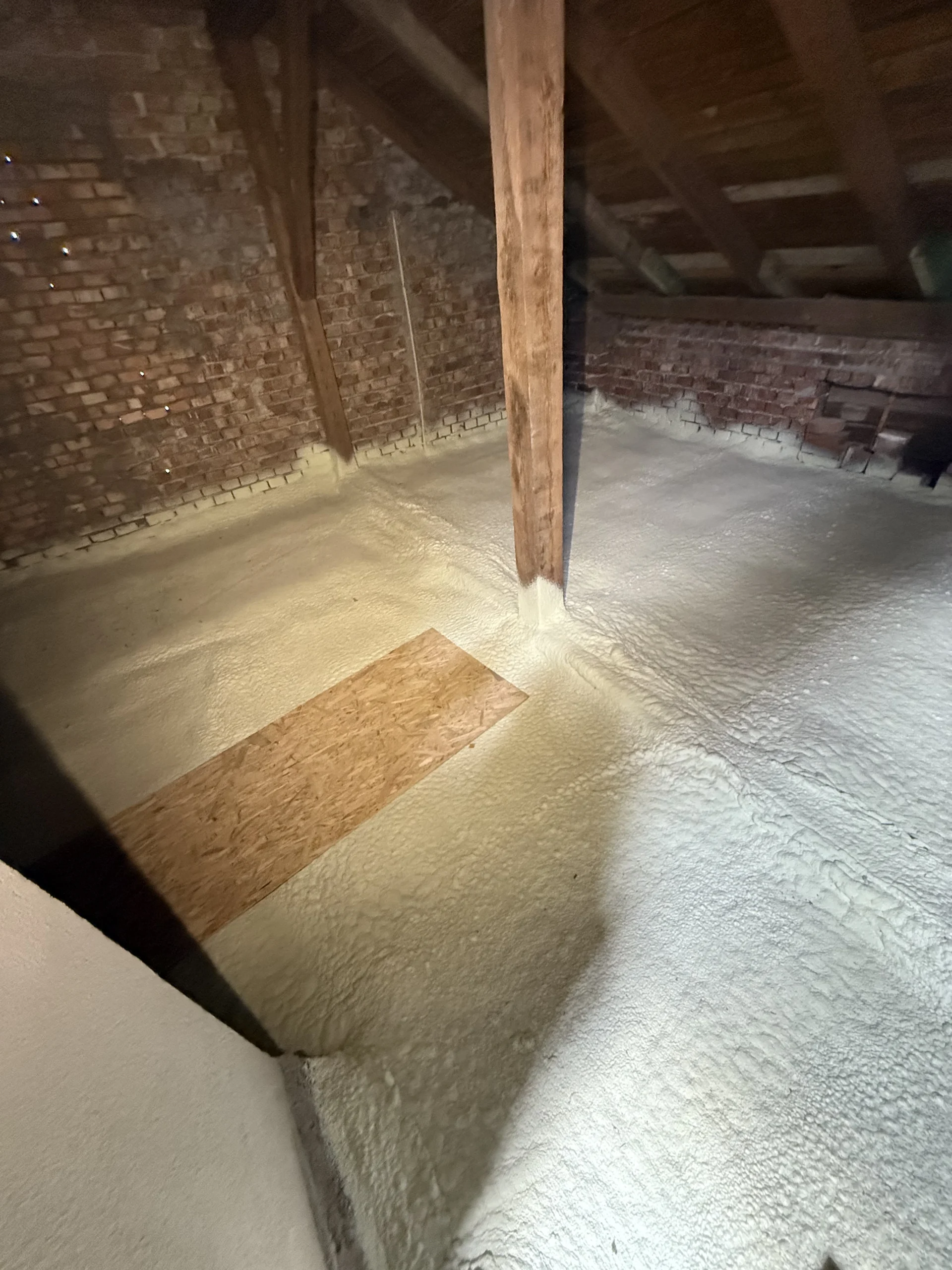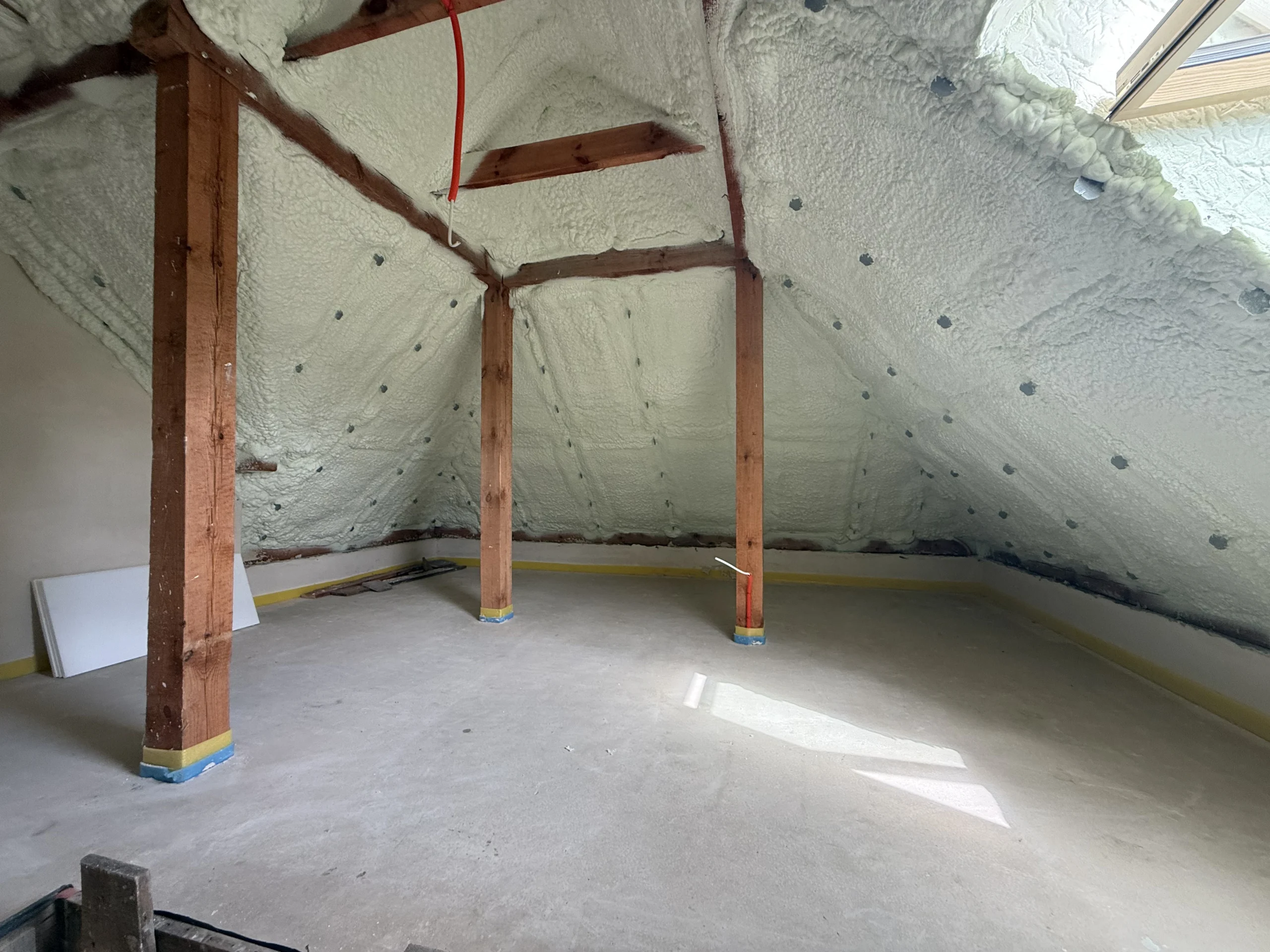 Piana PUR to trwała, lekka i szczelna izolacja, która poprawia komfort cieplny i akustyczny poddasza, redukując koszty ogrzewania. Dzięki natryskowi uzyskujemy ciągłą warstwę izolacji bez szczelin, idealną do konstrukcji drewnianych i skomplikowanych połaci.